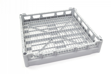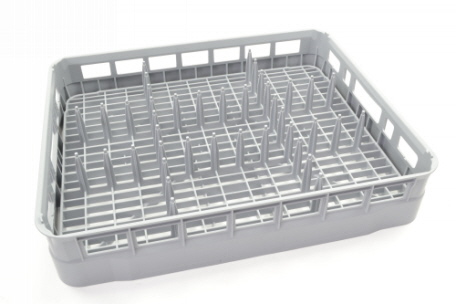 Vollkunststoffkorb mit fixer Facheinteilung für 4 x 5 Gläser oder Tassen. Innenhöhe 110mm.