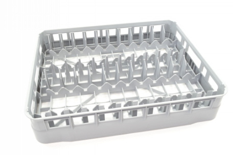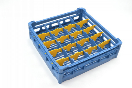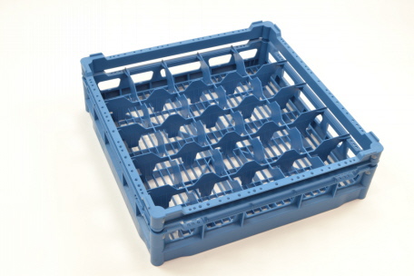 Vollkunststoffkorb mit fixer Facheinteilung für 5 x 5 Gläser oder Tassen. Innenhöhe 110mm.
